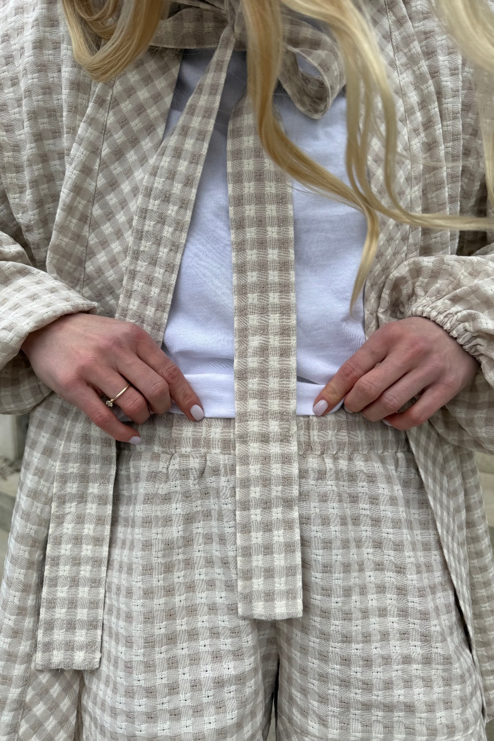 Doskonale sprawdzi się noszone do szortów, lnianych spodni oraz jako narzutka na strój kąpielowy.
