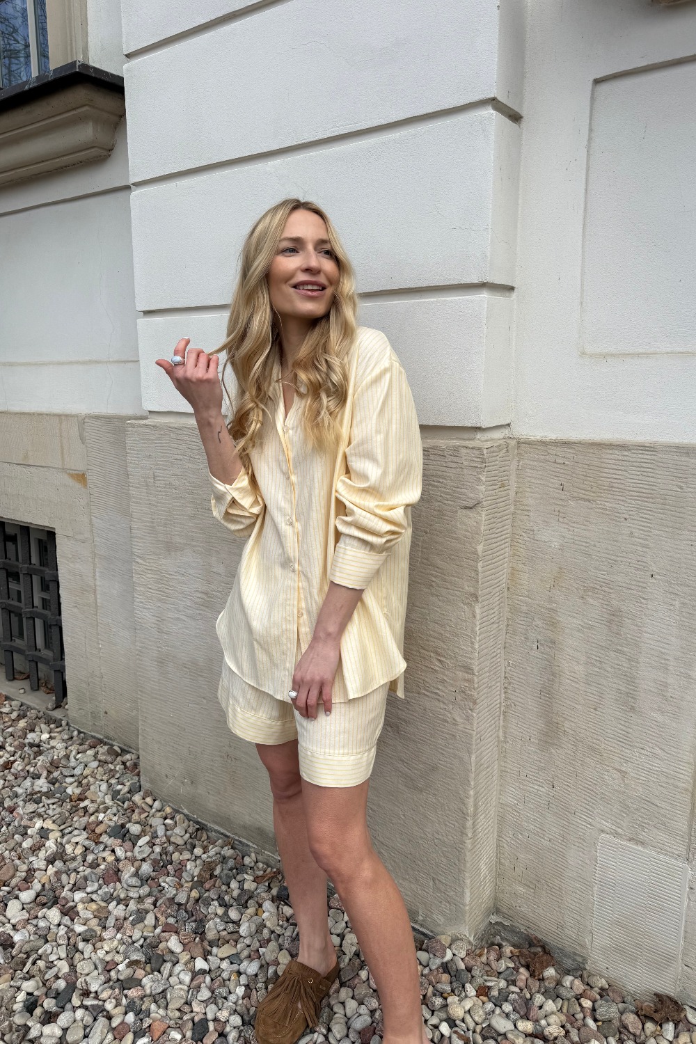 Subtelna elegancja w letnim wydaniu. Koszula o swobodnym fasonie łączy klasykę z nowoczesną lekkością, tworząc ponadczasowy model na ciepłe dni.
