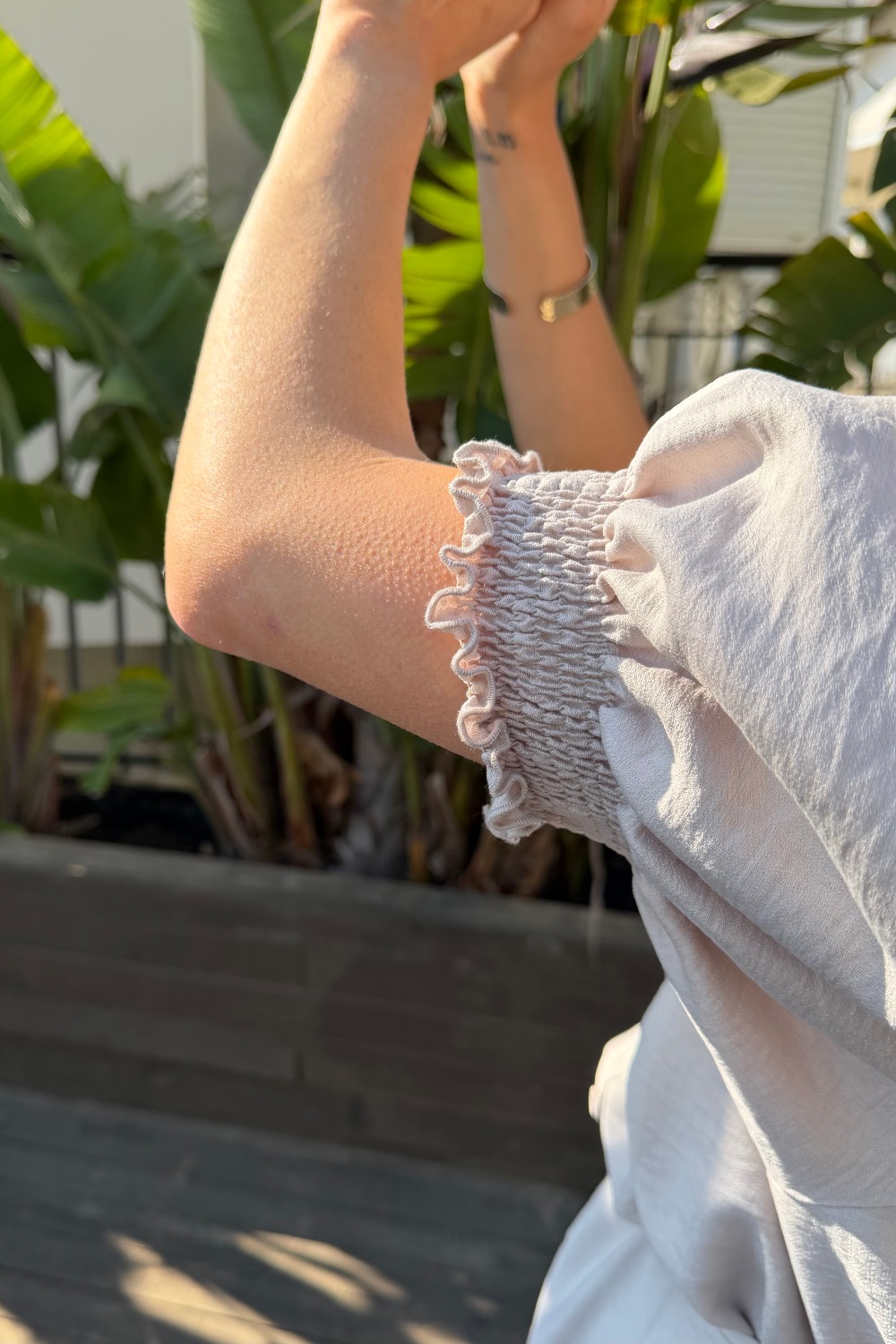 Lekki, zwiewny fason pięknie układa się na sylwetce, a subtelne detale nadają jej wyjątkowego charakteru.