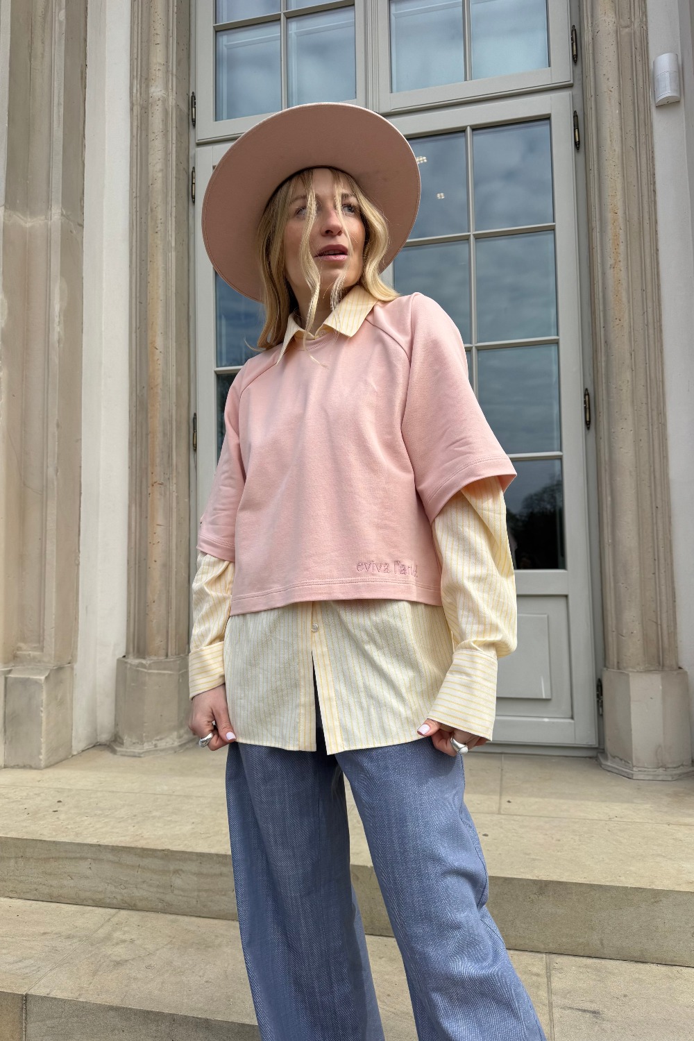 T-shirt o pudełkowym kroju z kolekcji Eviva l’Arte to połączenie prostoty i artystycznego wyrazu. Wykonany z miękkiej bawełny premium, wyróżnia się nowoczesną linią i subtelnym haftem "Niech żyje sztuka". Idealny do stylizacji casual i eleganckiego athleisure.